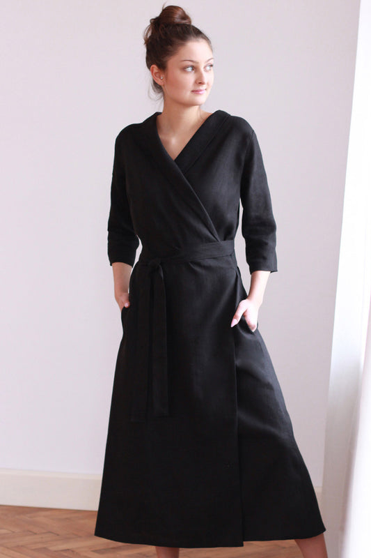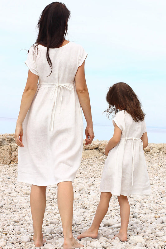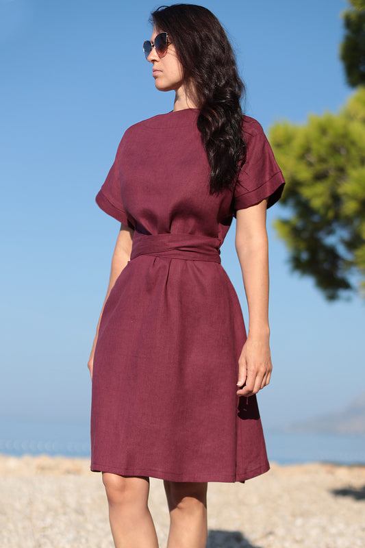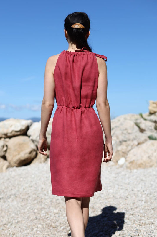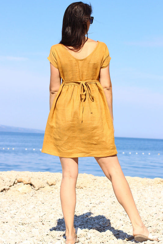 Letné ľanové šaty na zaväzovanie