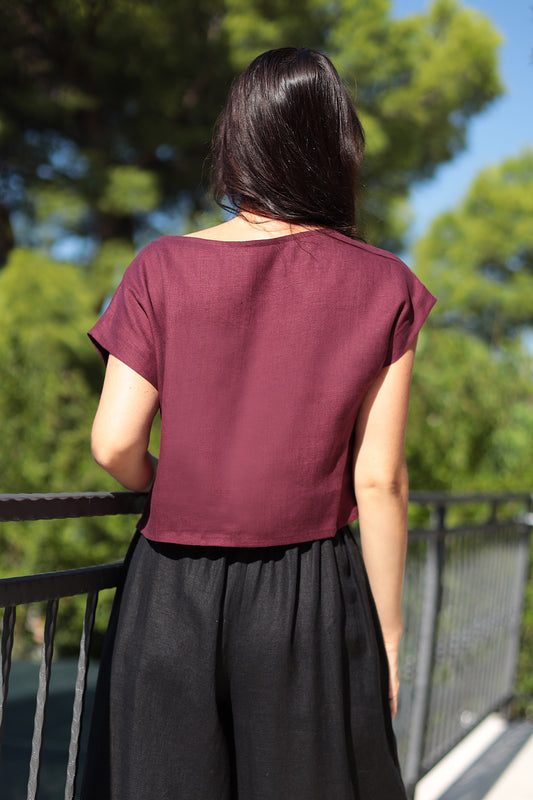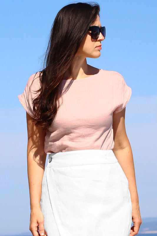 Krátke ľanové tričko zoštíhľujúce