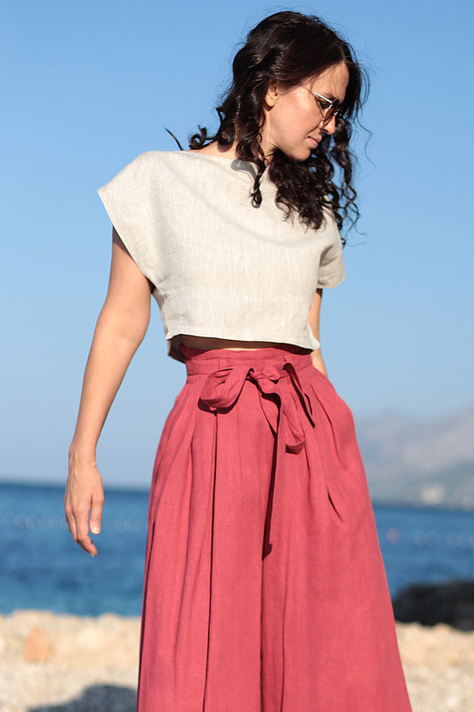 Ľanový top na zaväzovanie