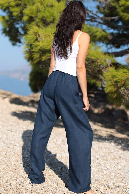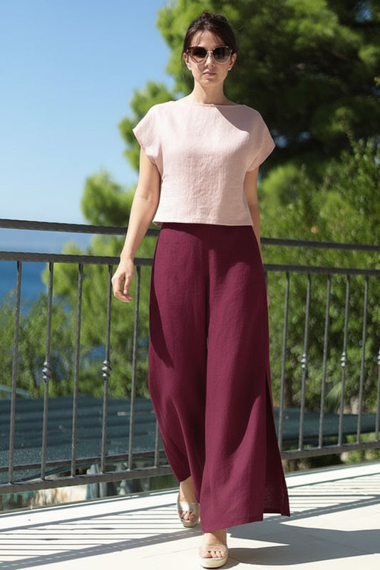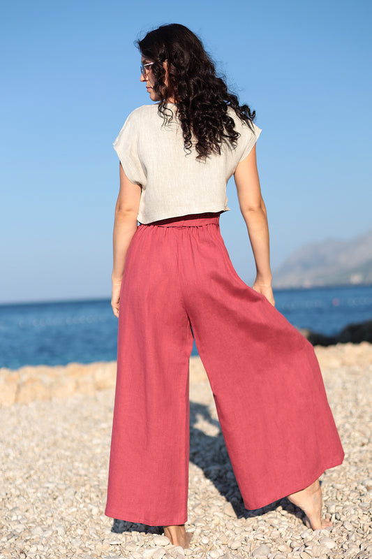 Ľanové široké nohavice