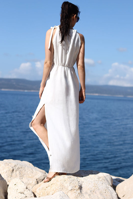 Ľanové maxi šaty s rázporkom