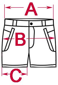 Veľkosť | Šírka v páse (A) | Šírka cez boky (B) | Šírka nohavíc (C) |